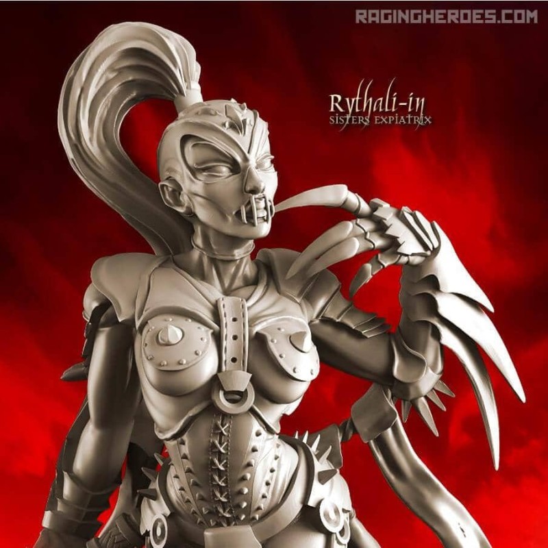 Comme la plupart des Expiatrixes, Rythali-in a un passé très sombre et a été plus d'une fois sur l'extrémité de réception des fouets qu'elle porte maintenant. Son visage masqué, ses pointes, sa tenue recouverte de lames sont un rappel perpétuel que, même après de longues années de pénitence, un pécheur de son ampleur ne devrait jamais être trop approché.