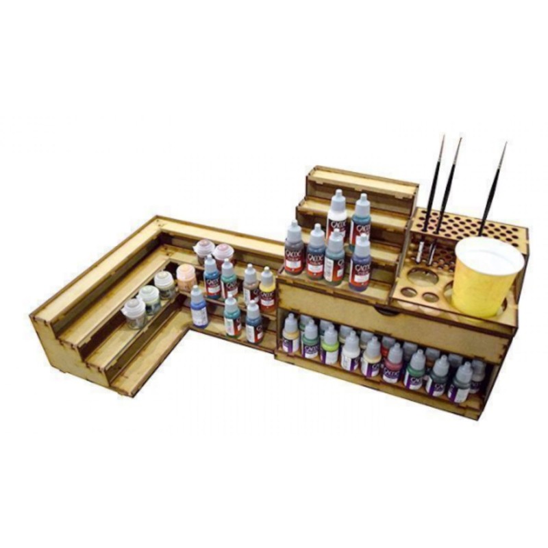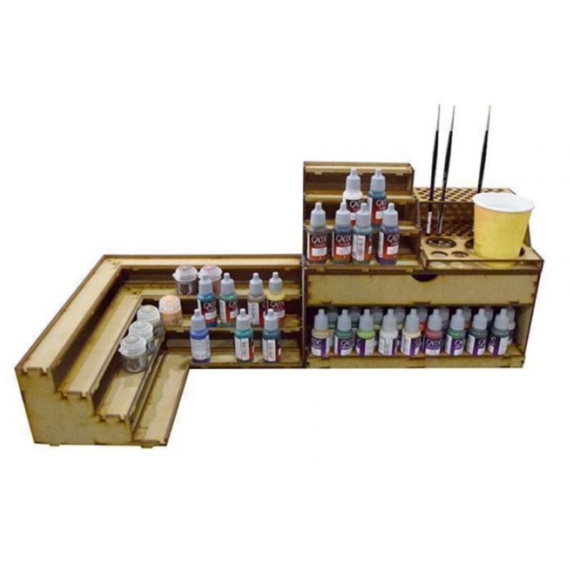 - 1 module d'angle en 30 cm x 30 cm, avec un espace pour les bouteilles de peinture les plus utilisées sur le marché.