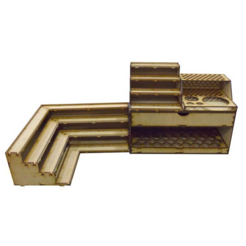 - 1 module de deux tiroirs de 30 cm, un pour ranger tous vos outils, accessoires, etc., et un autre avec un espace pour jusqu'à 54 bottes de type Vallejo
