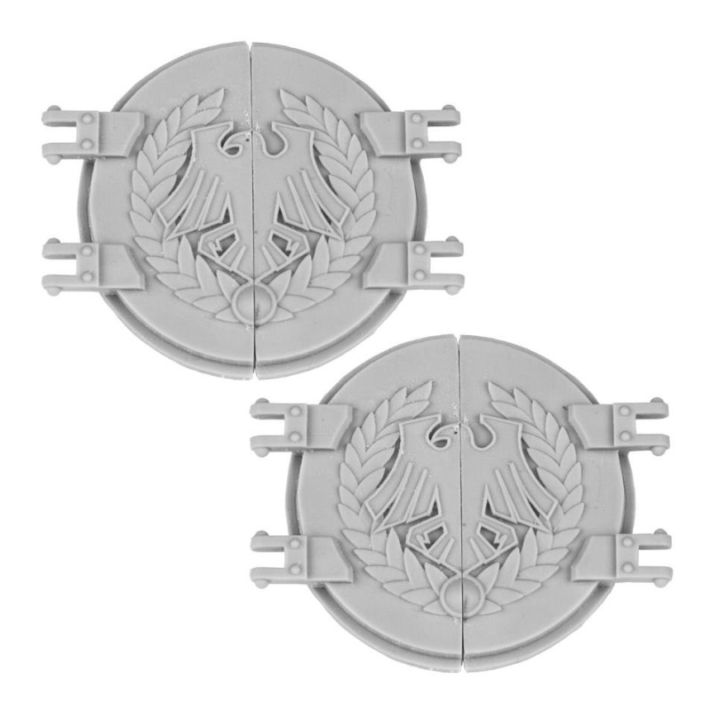 Améliorez un Rhino de modèle Deimos pour représenter la Garde du Corbeau avec cet ensemble de 2 portes en résine finement détaillées, chacune présentant l'iconographie sculptée de la Légion.