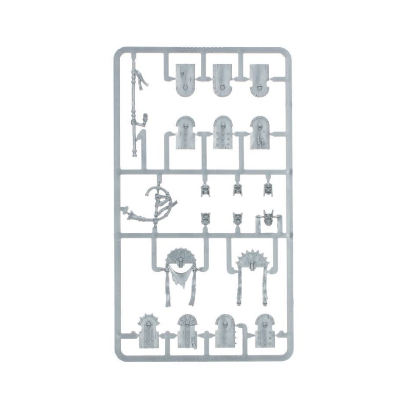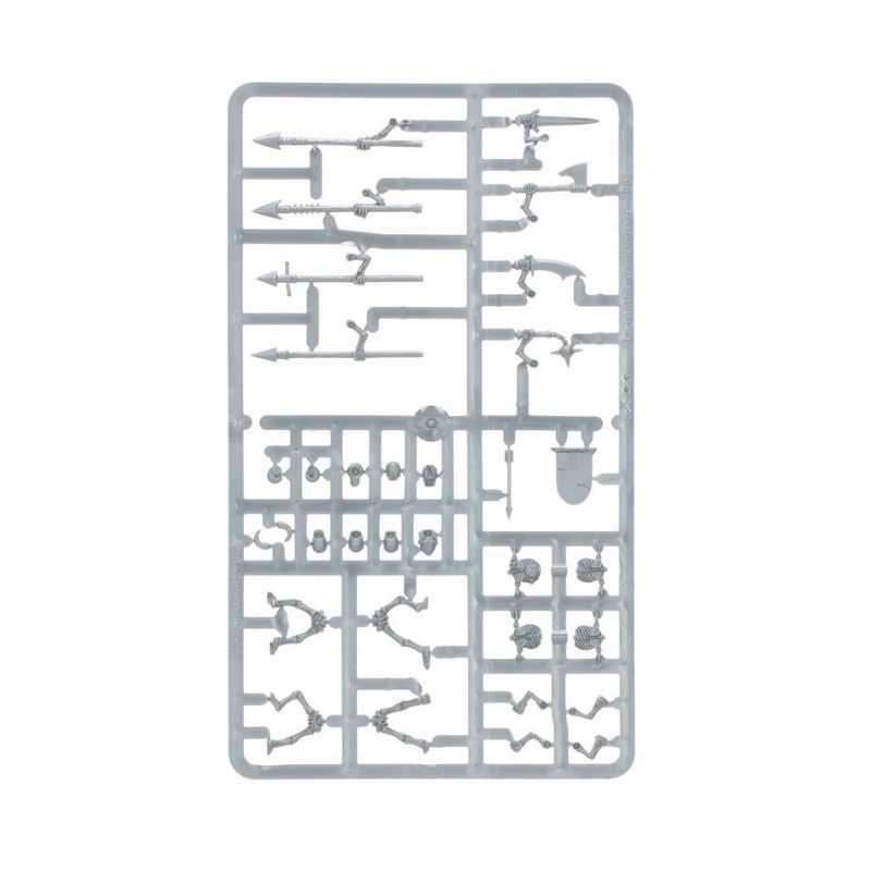 Ce kit contient divers styles d'armes, de boucliers, de têtes squelettiques, de carquois et de positions de bras, tous interchangeables pour que vous puissiez donner vie à votre cavalerie immortelle.