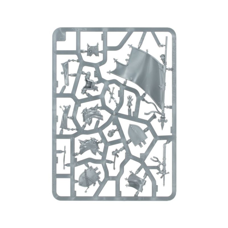 Ce kit est composé de 43 éléments en plastique, d'un Socle Carré Citadel de 50mm et d'une lanche de Décalcos Bretonniennes. Cette figurine est fournie non peinte et nécessite assemblage.