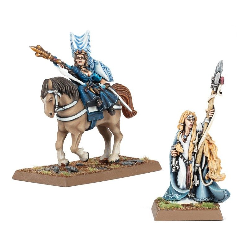 Ce kit permet d'assembler deux figurines de Prophétesses de la Dame, une montée sur un destrier en plastique et une à pied, pour soutenir votre armée du Royaume de Bretonnie. Drapées de robes légères et armées de bâtons mystiques, ces talentueuses sorcières se distinguent parmi les guerriers bretonniens en armure, car leur véritable puissance réside dans leurs capacités ésotériques. Ces figurines peuvent également servir à représenter des Demoiselles, le rang inférieur des Servantes de la Dame.