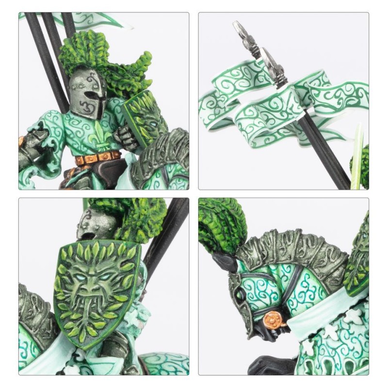 Ce kit permet d'assembler le légendaire Chevalier de Sinople, un mystérieux champion du Royaume de Bretonnie. Monté sur le Coursier d'Ombre en train de cabrer, le Chevalier de Sinople se rue au combat en apparaissant de nulle part, une silhouette spectrale brandissant la Lame de Douleur pour trancher les hordes infâmes et les redoutables monstres.