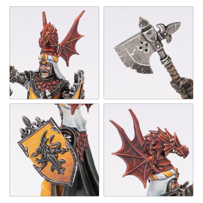 Ce kit en résine permet d'assembler Sire Cécil Gastonne, un héros tueur de dragons pour votre armée du Royaume de Bretonnie dans les parties de Warhammer: The Old World. Ce héros mythique est idéal pour mener vos charges, et il peut abattre même les bêtes les plus imposantes à l'aide de sa hache enchantée, Consolatrice.