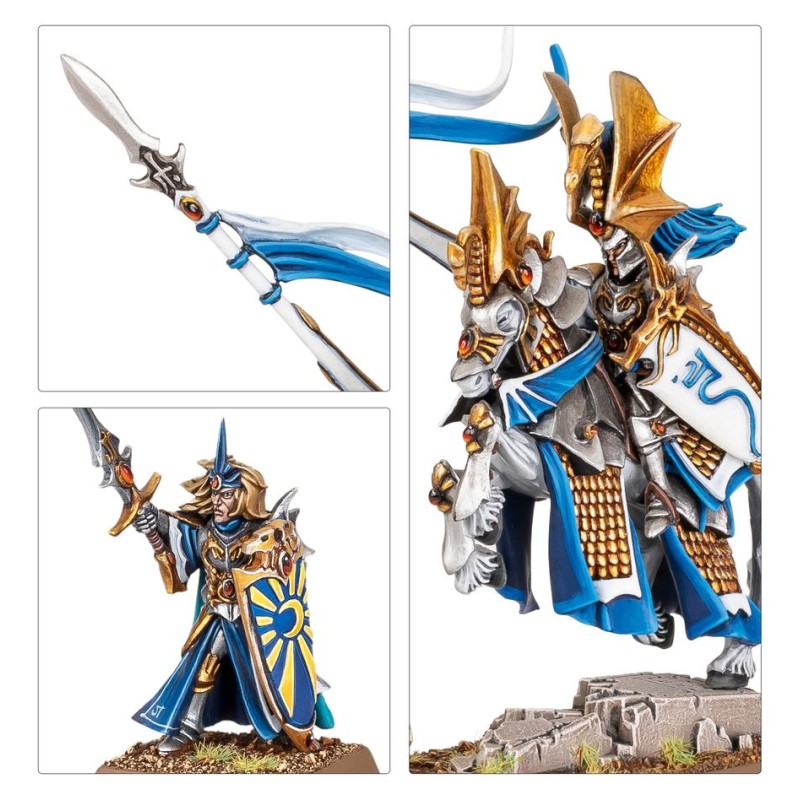 - Contient un Seigneur à pied et un monté sur un coursier elfique caparaçonnéSeigneurs Hauts Elfes