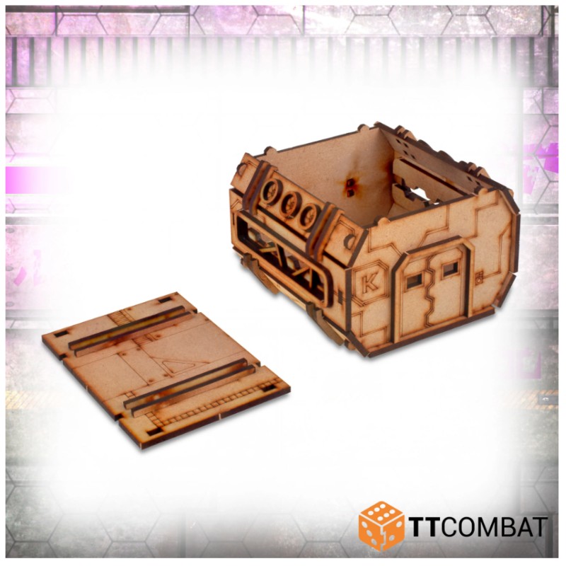 Le Prefab Chems Lab est fabriqué en MDF de 3 mm et en carton gris de 1 mm. Il s'agit d'un excellent élément de décor à utiliser sur la table pour Infinity et il s'adaptera parfaitement aux autres jeux 28-32 mm.