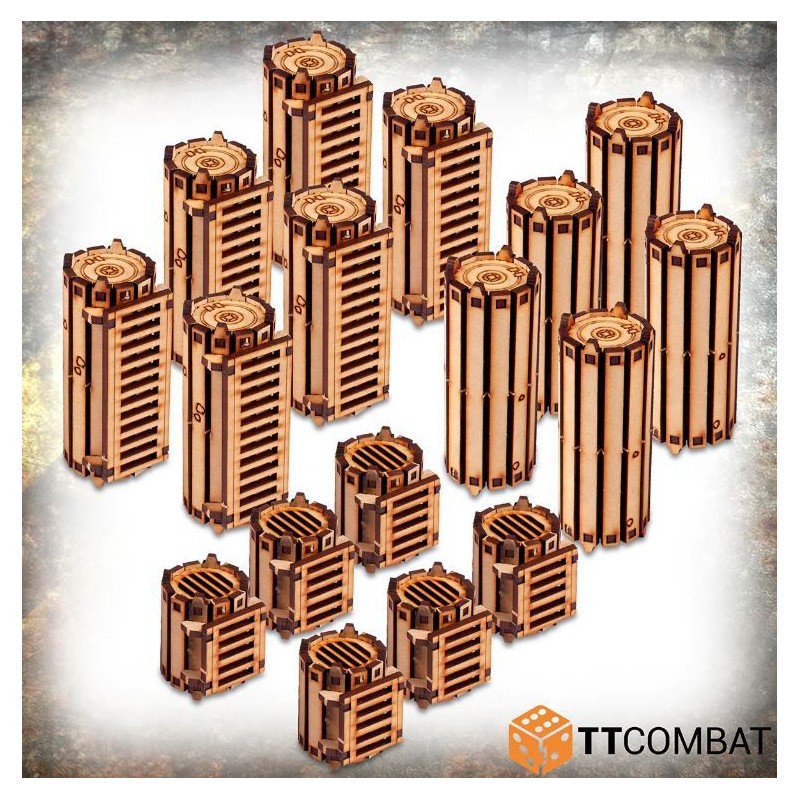 Ce kit est fait de MDF 3mm et a été conçu pour des jeux tentaculaires de guerre des gangs 28-32mm dans une jungle dense de machines.