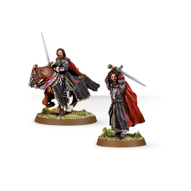 Ce pack contient 2 figurines en résine – Aragorn à pied, et monté, en 5 composants plus un socle rond de 25mm et un socle rond de 40mm.