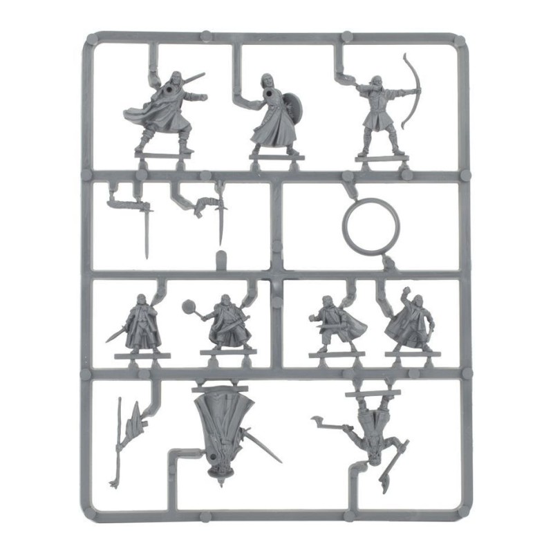 Ce kit plastique contient 13 composants et dix socles ronds de 25mm avec lesquels assembler La Communauté de l'Anneau ainsi qu'un anneau marqueur d'initiative.