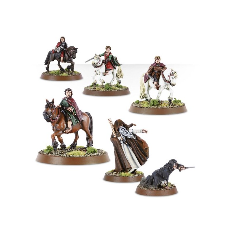 Ce pack contient Sharkey et Worm, Frodo of the Nine Fingers, Samwise the Brave, Peregrin, Captain of the Shire et Meriadoc, Captain of the Shire. Ces figurines sont en métal, fournies en huit composants, plus deux socles ronds de 25mm et quatre socles ronds de 40mm.