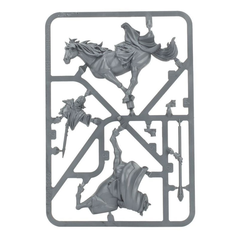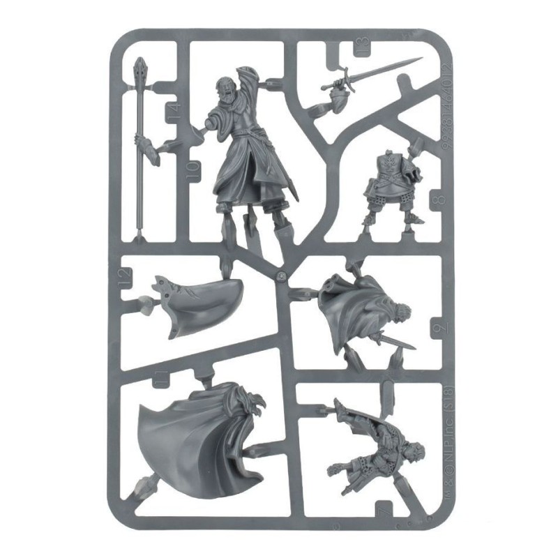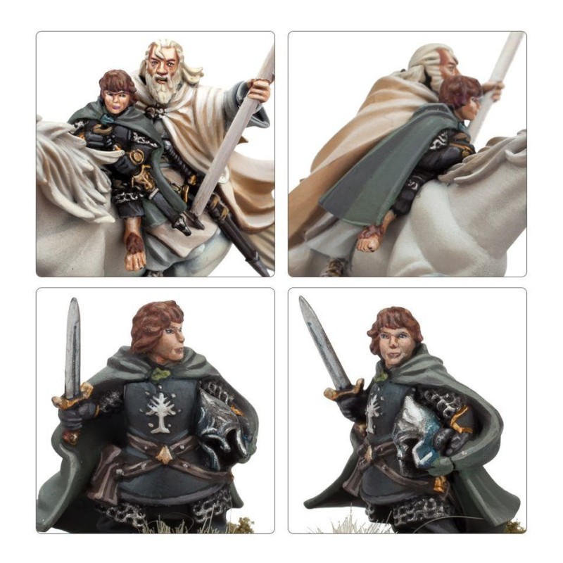 Ce kit plastique contient les composants nécessaires pour assembler Gandalf the White and Peregrin Took, tous deux à pied et montés sur Shadowfax. La version montée vous donne le choix de retirer Peregrin Took pour ne laisser que Gandalf sur Shadowfax. À pied, Gandalf manie Glamdring et son bâton de magicien, tandis que Peregrin Took porte l'uniforme de la Garde de la Citadelle de Minas Tirith et tient son casque de la main gauche.