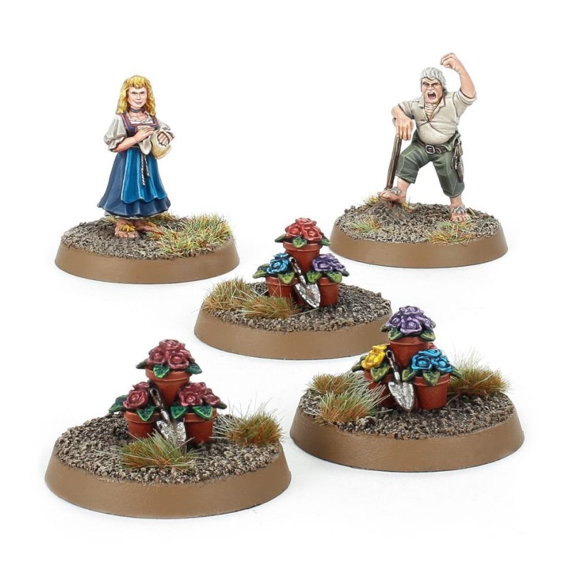 Ce kit en résine très détaillé en plusieurs parties permet de construire une Rosie Cotton et un Hamfast Gamgee, chacun étant fourni avec une base ronde Citadel 25 mm. Les règles d'utilisation de ces modèles dans les jeux se trouvent dans le supplément Scouring of the Shire.