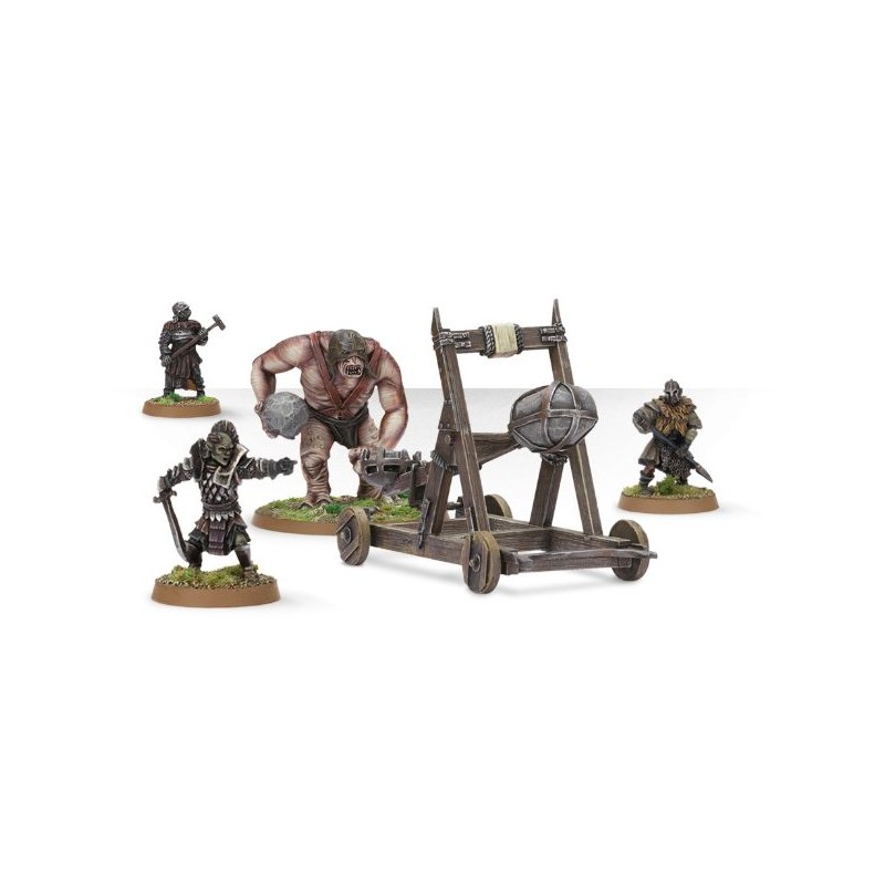 Ce kit en résine permet d'assembler une Mordor War Catapult, ainsi qu'un énorme Mordor Siege Troll, et trois Mordor Orc Siege Crew à utiliser dans vos armées de Barad-dûr, de l'Army of Gothmog et des Legions of Mordor. Cet engin de siège massif est un excellent moyen d'anéantir l'ennemi de loin sous des tirs de rochers.