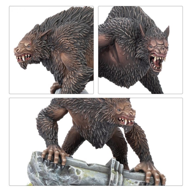 Ce kit en résine permet d'assembler deux Werewolves, des créatures bestiales terrifiantes qui combattent pour les armées d'Angmar dans Middle-earth Strategy Battle Game. Plus forts et plus rapides que de simples orques ou hommes, ils attaquent à une vitesse plus proche de celle de la cavalerie. Lorsqu'ils attrapent une proie, ils la déchiquettent avec leurs crocs et leurs griffes acérées. Cette terrifiante perspective offre au général habile une occasion de surprendre ses ennemis avec une menace qu'ils ne peuvent ignorer.