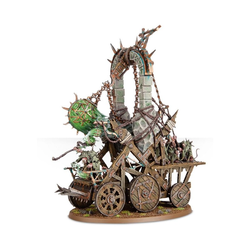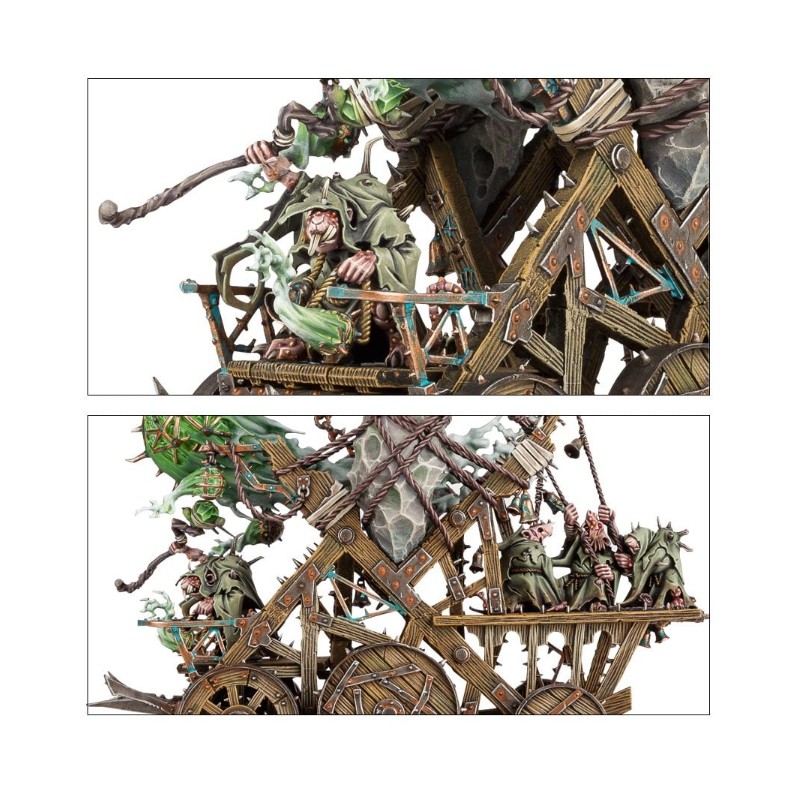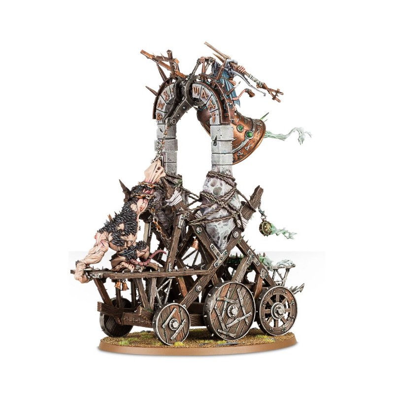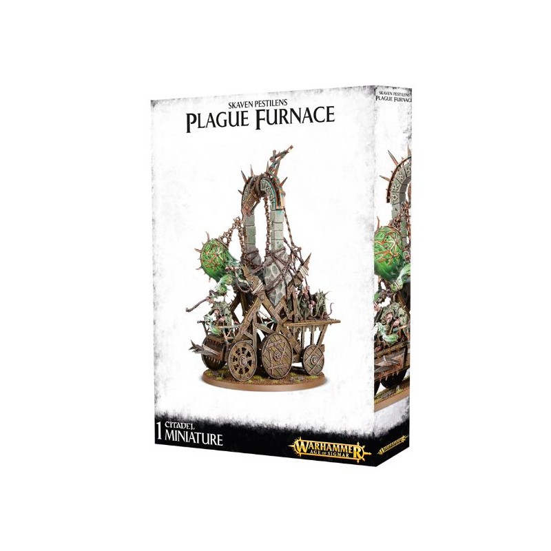 Description du produitVrombissant sourdement aux accents de la maladie et de la pourriture, l'encensoir colossal de la Plague Furnace se balance inexorablement. Il émet des nuages asphyxiants de miasmes immondes, qui recouvrent les terres qu'il occupe sous des vrilles de brume ignoble, aussi repoussante qu'envahissante et porteuse de putréfaction. Le Plague Priest couinant perché sur la Plague Furnace la guide au combat tout en répandant ses bénédictions nauséeuses à ses ouailles impures.