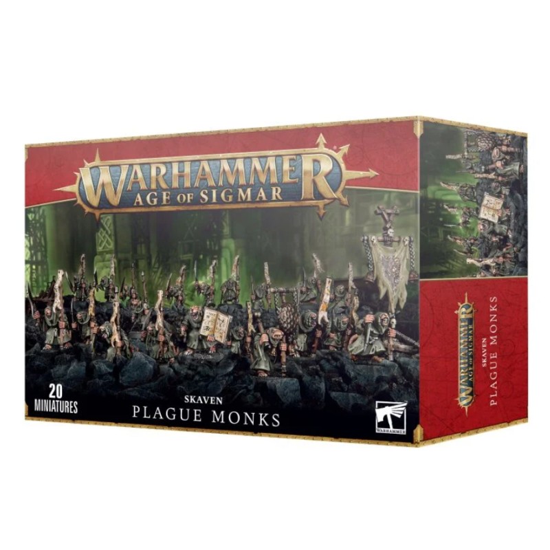 Description du produitCe kit plastique vous fournit tout le nécessaire pour monter une horde couinante de vingt Plague Monks, avec l'option de les armer d'une paire de lames fétides ou d'une lame fétide et d'un bâton des plaies. Une des figurines peut devenir le Bringer-of-the-Word, doté d'un Parchemin de la Peste ou d'un Livre des Plaies. Une autre figurine peut devenir un porte-icône avec Bannière de Contagion ou Icône de Pestilence, et une autre encore peut être montée en tant que héraut de la peste, portant un Gong de Dégoût ou un redoutable Carillon d'Escarres.