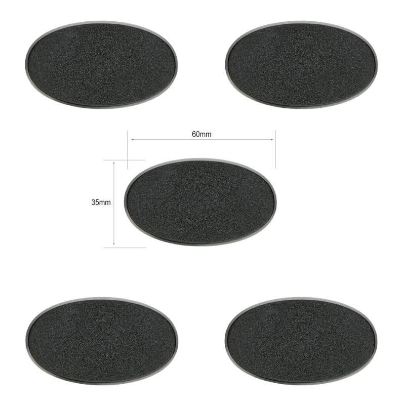 Ce pack contient cinq socles ovales Citadel de 65x35mm.