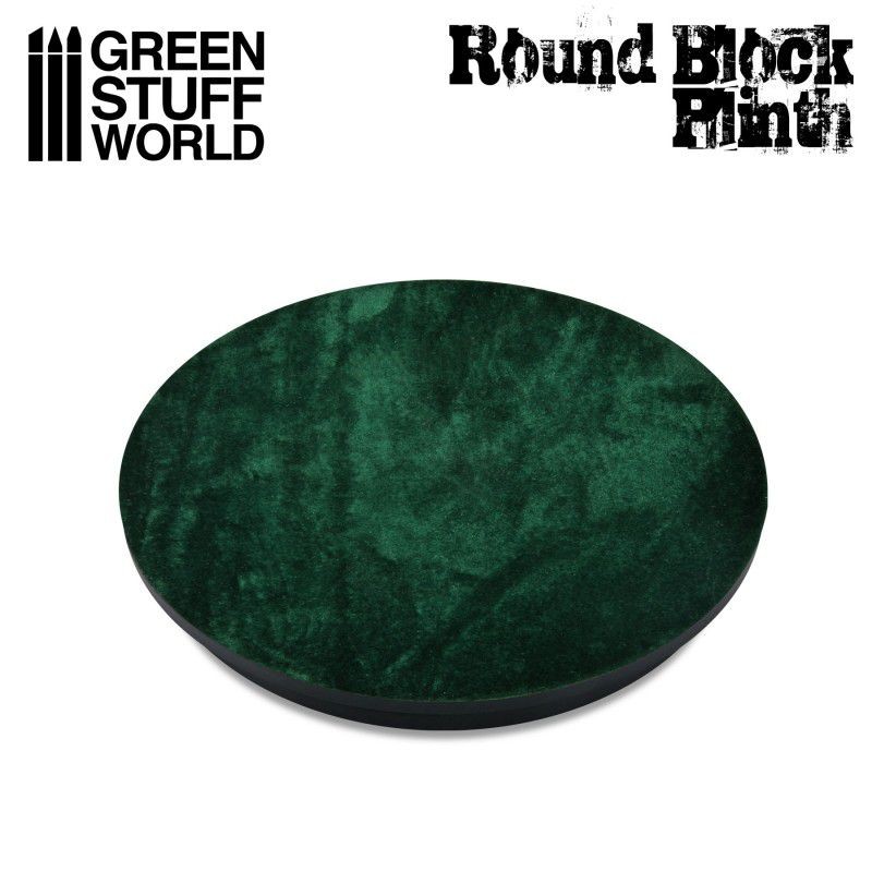Socle Carré Ouvragé en bois MDF de couleur Noir Laqué, idéal pour exhibier vos figures. Le bas de la base est recouverte d’un mince tapis de couleur vert foncé.