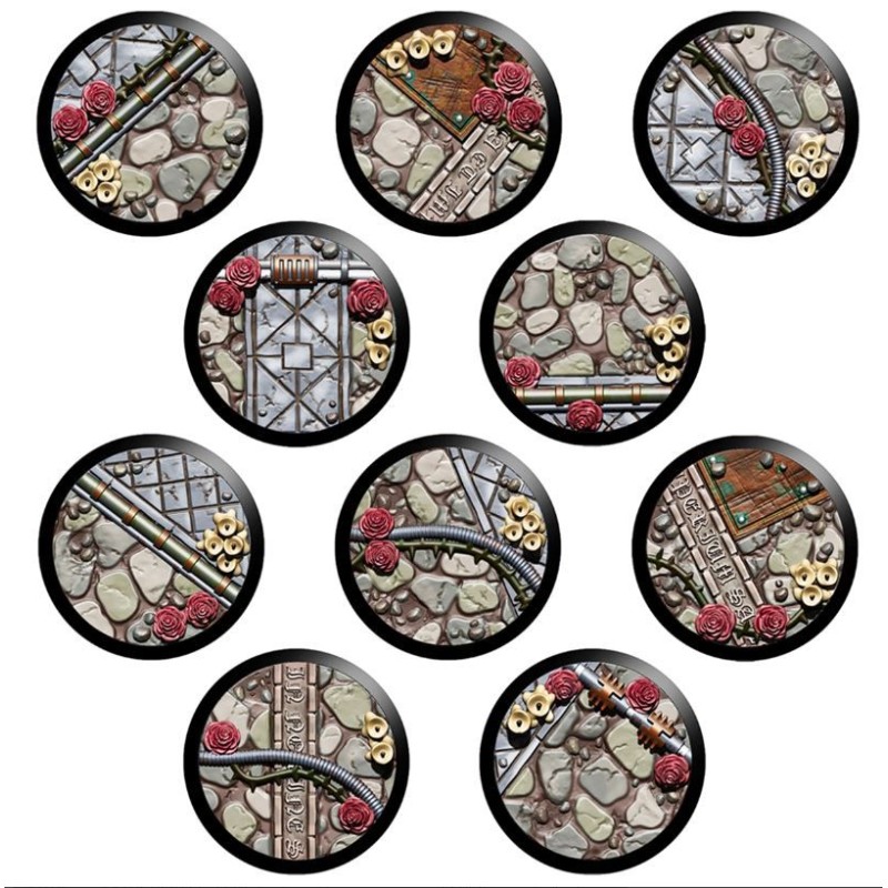 Description du produit- 10 socles texturés EMPEROR SISTERS de 25 mm et 10 socles en plastique de 25 mm.