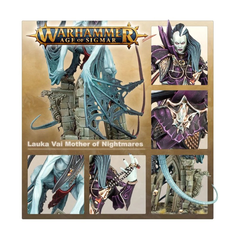 Ce kit plastique en 39 composants permet d'assembler une Lauka Vai, Mother of Nightmares, et il est fourni avec 1x socle rond Citadel de 80mm. On peut sinon assembler cette figurine en tant que Vengorian Lord.