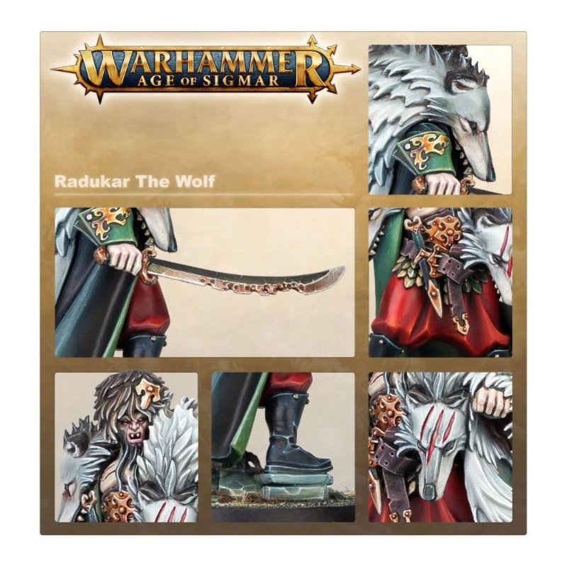 Note: afin de jouer Radukar the Wolf dans les parties de Warhammer Age of Sigmar, vous devez inclure la Cour de Radukar dans votre armée.