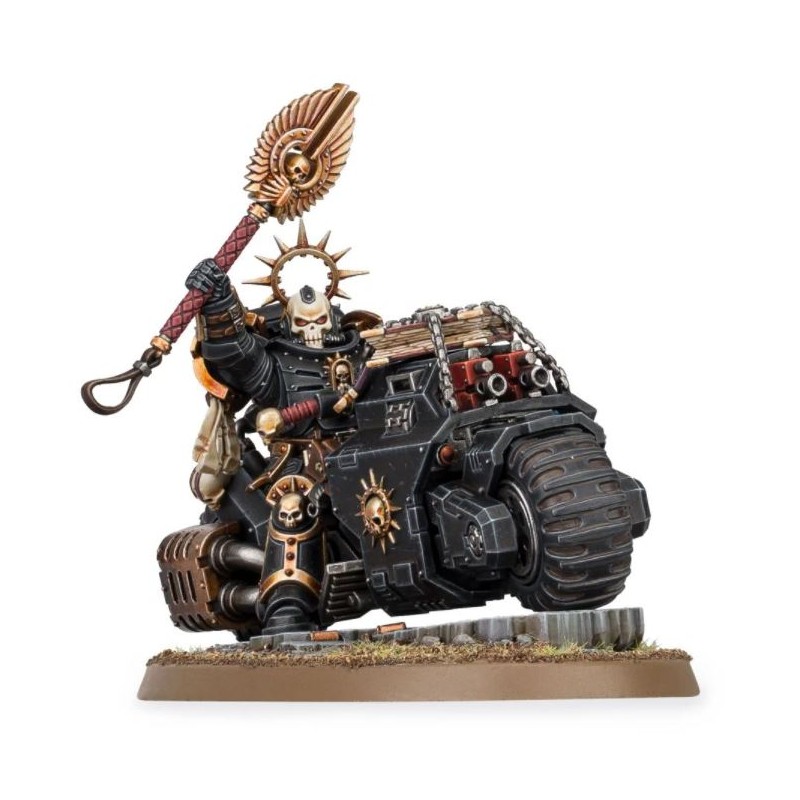 Description du produitQuand un Chapelain se rend au front sur une moto de modèle Raider, il peut avancer au rythme de la plus rapide des percées blindées. Luttant au coeur de l’action, il exhorte ses frères à arracher la victoire tout en vociférant son catéchisme, et charge l’ennemi tête baissée, en assénant de terribles coups de son crozius arcanum.