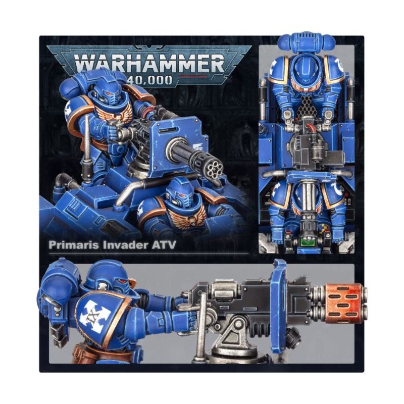 Description du produitLe quad Invader des Primaris est un véhicule tout-terrain très polyvalent taillé pour la reconnaissance agressive. Équipé d’un multi-fuseur ou d’un canon gatling Onslaught, il peut rapidement fournir un tir de soutien aux points vulnérables de la ligne, ou promptement engager le combat avec les éclaireurs adverses pour les détruire.