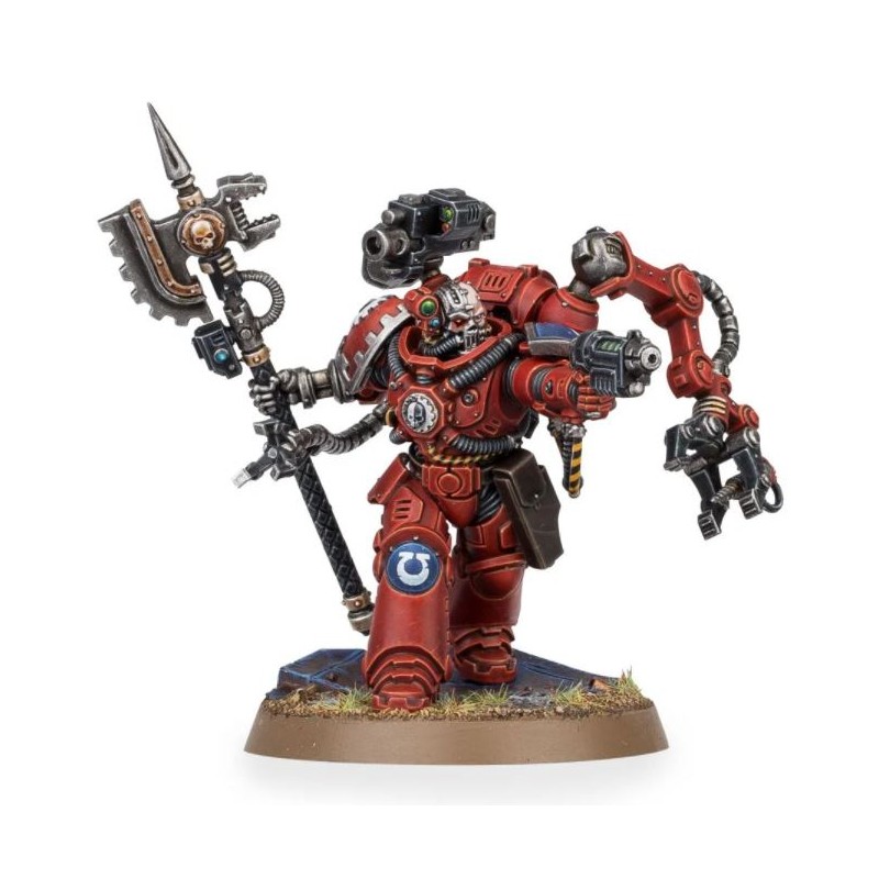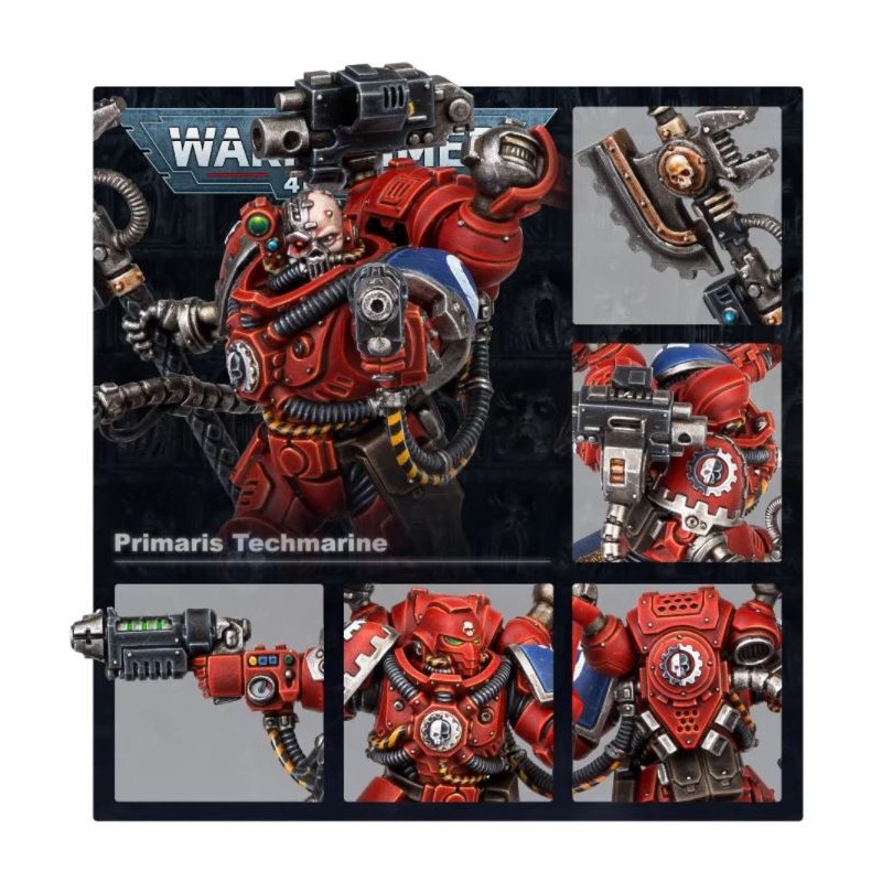 Ce kit permet d'assembler un Techmarine Primaris. Il est muni d'un pistolet à gravitons, d'une hache énergétique de l’Omnimessie, d'un servobras, d'une mécadendrite, et d'un bolter de la forge. Il est fourni en 24 composants plastique plus un socle rond Citadel de 40mm.