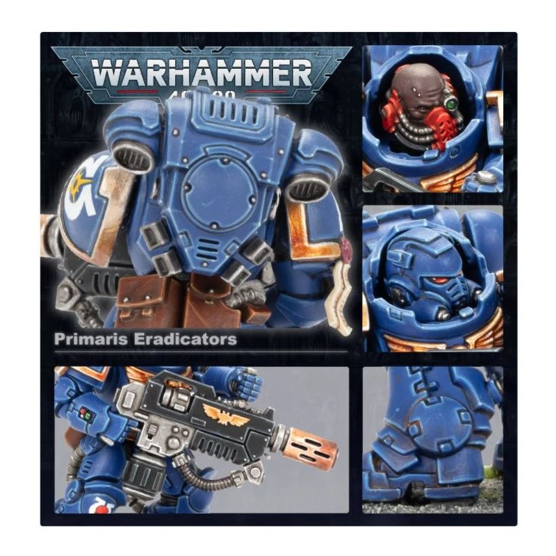 Ce kit plastique en 122 composants permet d'assembler trois Eradicators. Il est fourni avec trois socles ronds Citadel de 40mm ainsi qu'une planche de décalcomanies d'infanterie Ultramarines.