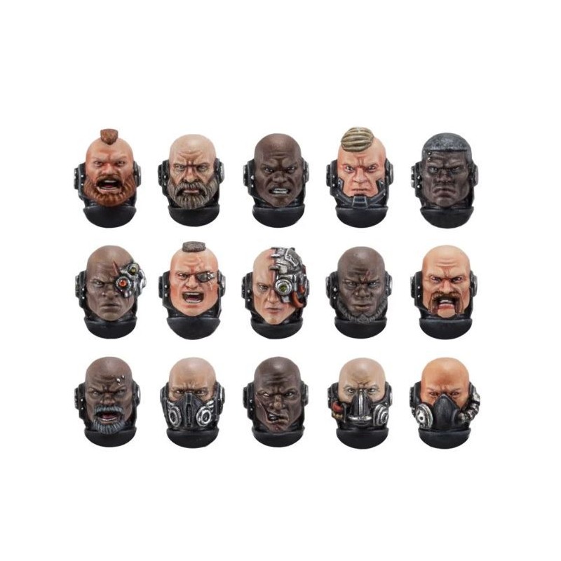 Ce kit d'amélioration fournit 15 têtes nues uniques pour personnaliser vos figurines de Space Marines, en ajoutant du caractère et de la variété à vos guerriers individuels. Ces têtes présentent un large éventail de traits, d'expressions, de cicatrices, de bioniques, de cheveux et d'accessoires. Elles sont toutes dotées d'une articulation à rotule standard à la base du cou, ce qui permet de les utiliser avec une grande variété de figurines Space Marine en plastique et en résine. Aucune des têtes ne porte de marque spécifique à la Légion, ce qui signifie qu'elles peuvent être utilisées pour n'importe quelle Légion.