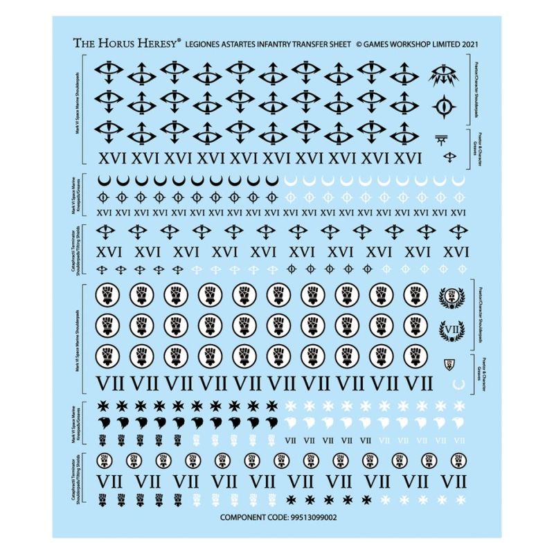 Ce kit est composé de 137 éléments en plastique, de 2x Socles Ronds Citadel de 60mm, de 4x Socles Ronds Citadel de 32mm et de 1x Planche de Décalcos d'Infanterie de Légion proposant x293 Décalcos de qualité, qui comprend de l'iconographie de légion pour les Sons of Horus et les Imperial Fists, afin de décorer vos figurines.