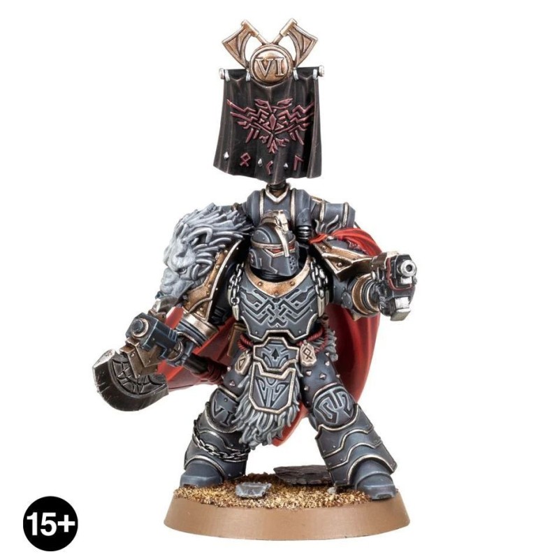 Ce kit en résine permet d'assembler un Praetor de Légion pour les Space Wolves. Il est équipé d'une énorme hache de Fenris et d'un pistolet bolter. Il porte une armure décorée de sublimes motifs fenrissiens pour souligner son appartenance à la VIe Légion. Il se distingue de ses frères par sa cape en peau de loup et la bannière montée sur son paquetage dorsal. Ce puissant guerrier et chef émérite est prêt à mener la charge. Vous trouverez une tête portant un casque ainsi qu'une nue arborant une impressionnante barbe.