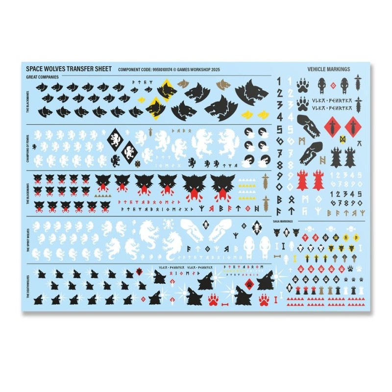 Ce kit est composé de 563 éléments en plastique, de 10x Socles Ronds Citadel de 32mm, de 11x Socles Ronds Citadel de 40mm et de 1x Planche de Décalcos des Space Wolves, comprenant 419 décalcos de grande qualité pour personnaliser vos figurines.