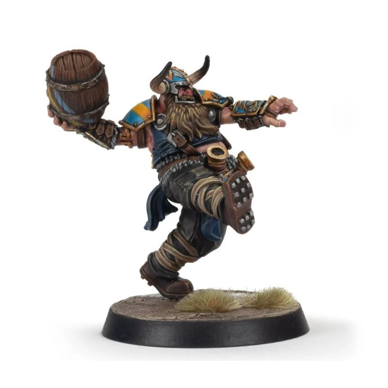Description du produitÉgalement connu sous le nom de Bombardier des tonneaux de bière, Thorsson Stoutmead a une capacité à boire qui n'a d'égale que sa capacité à renverser ses adversaires. Il est passé maître dans l'art de vider des tonneaux de bière et de les lancer sur ses adversaires. Cependant, les habitudes de consommation de Thorsson commencent à avoir raison de lui, comme en témoigne le ventre de bière qui tend son uniforme moulant.