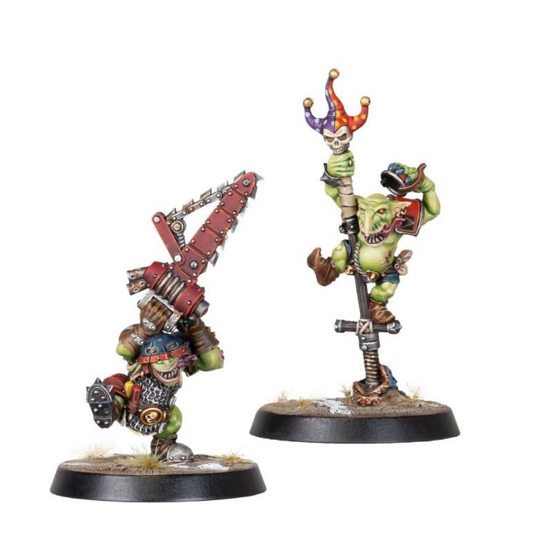 Description du produitNobbla Blackwart et Scrappa Sorehead sont d'excellents exemples de ce qu'un peu d'ingéniosité et un manque total de préservation de soi peuvent faire pour une partie de Blood Bowl. Nobbla est sans aucun doute un fou sadique, qui utilise sa tronçonneuse pour massacrer ses adversaires de la manière la plus flagrante possible. Scrappa est considéré comme assez intelligent pour un gobelin, car il utilise son bâton de saute-mouton "fantaisie" pour sauter en l'air et attraper une balle lancée.
