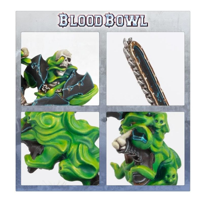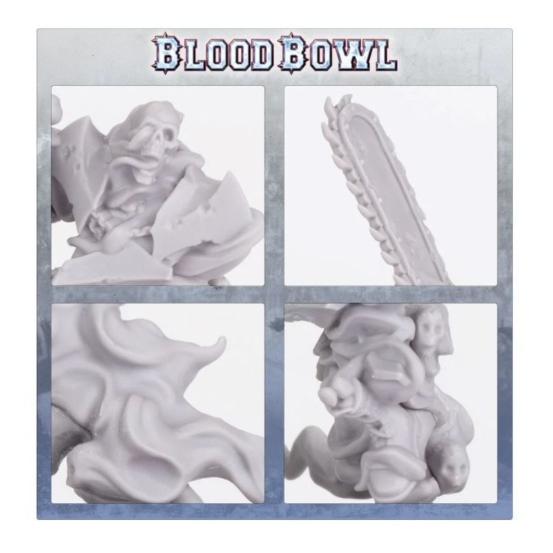 Description du produitBryce "The Slice" Cambuel était un cinglé maniant la tronçonneuse pour les Ostermark Bulls, avant qu'un malheureux dérapage ne coupe sa carrière - et son cou - plutôt court. Un rappel de ne jamais perdre la tête sur le terrain ! Heureusement, ce squelette psychotique est revenu de sa retraite et de sa tombe pour tourmenter à nouveau l'astrogranite. Les rumeurs persistent à dire que ses flammes émeraudes sont le résultat d'une fureur éternelle - peut-être parce que Cabalvision continue de montrer les moments forts de sa disparition embarrassante.