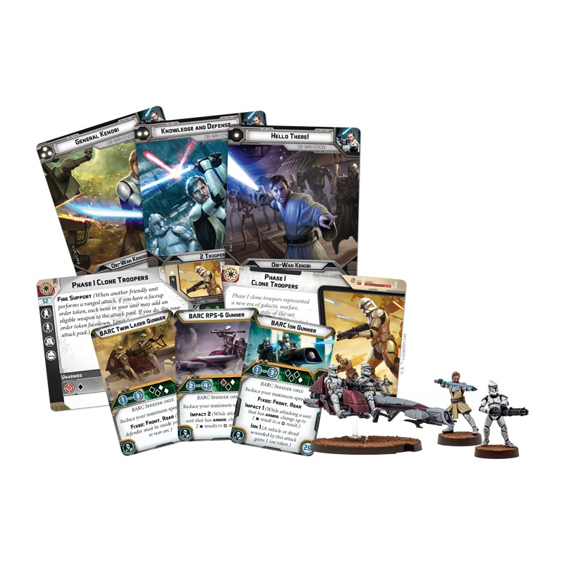 Deux escadrons de troupes clones de la phase I entrent dans la bataille pour préserver la République. Cinq d'entre eux portent le fusil blaster DC-15A tandis que deux spécialistes des armes lourdes ajoutent une puissance de feu supplémentaire avec un canon blaster rotatif Z-6 et un fusil blaster DC-15 modifié pour tirer à longue distance.