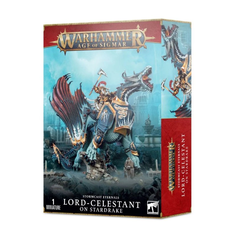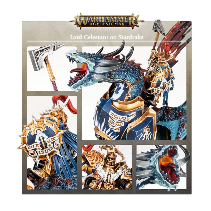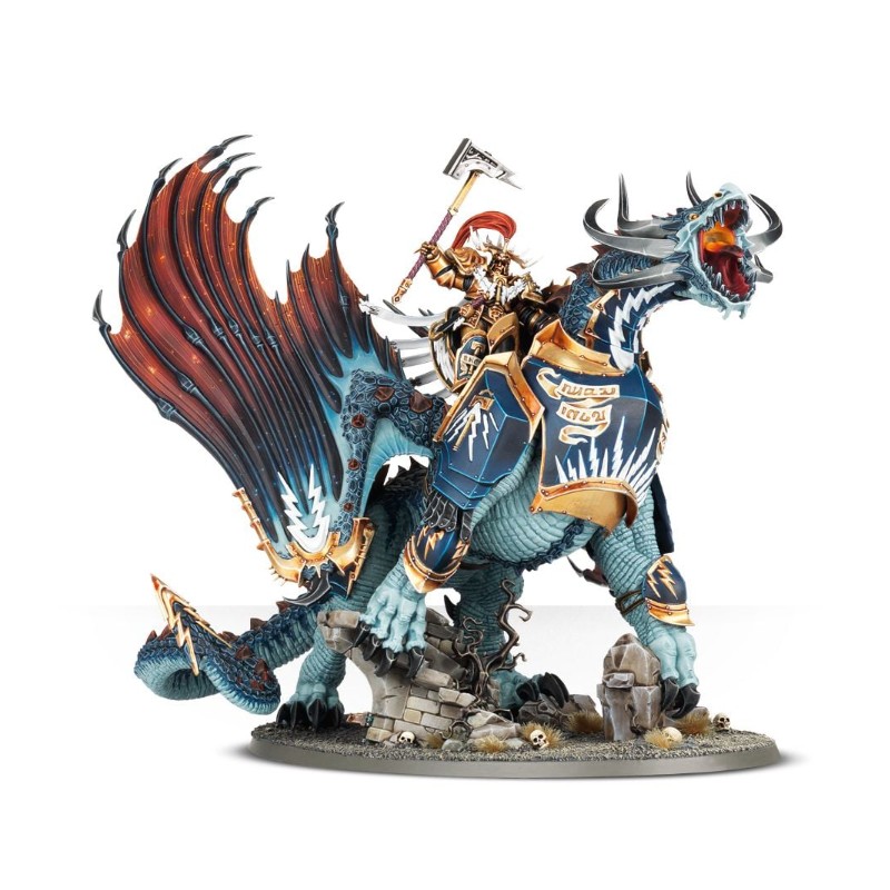 Un Lord-Celestant sur Stardrake, armé d'un marteau Tempestos ou d'une lame fulgorée et d'un bouclier de sigmarite, ou