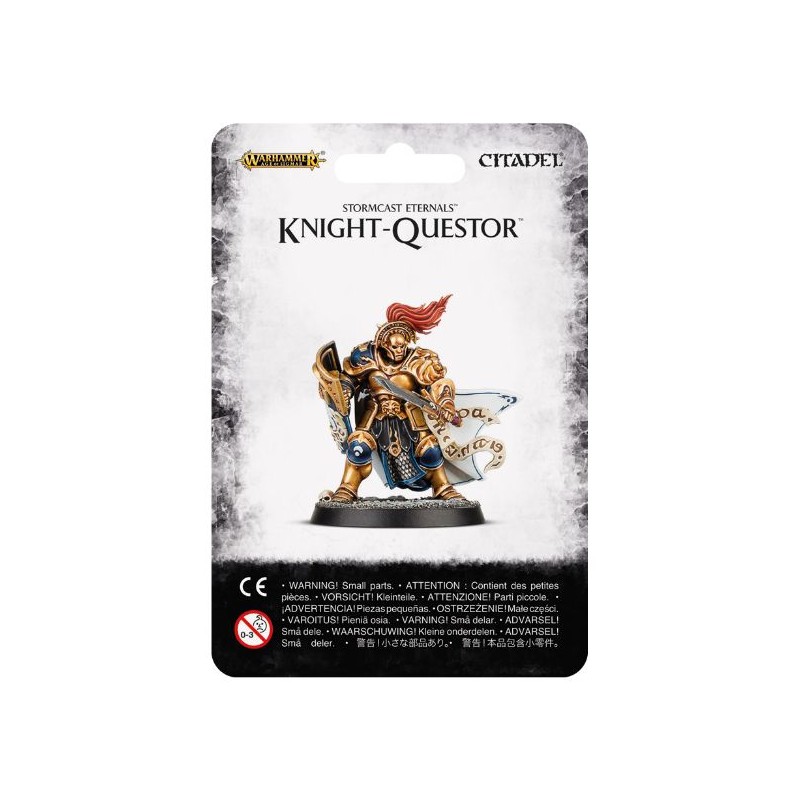 Description du produitTransportés en plein combat par la foudre divine, les Stormcast Eternals sont les guerriers de la vengeance. Forgés par le Dieu-Roi Sigmar pour lui servir d'armes vivantes contre le pouvoir du Chaos, certains de ces combattants célestes se distinguent même de leurs frères par leurs prouesses héroïques; certains de ces champions deviennent des Knight-Questors. Ils jurent de faire rempart de leur corps entre les habitants des Royaumes Mortels et les horreurs prédatrices du Chaos, et ils se lancent dans de grandes quêtes au nom de Sigmar pour récupérer de puissants artéfacts qui pourraient donner l'avantage à l'Ordre.