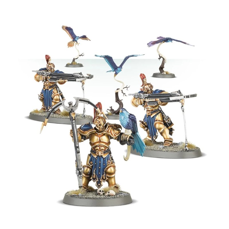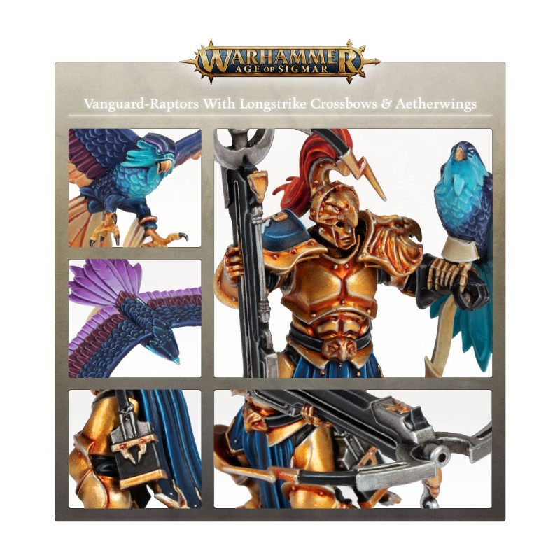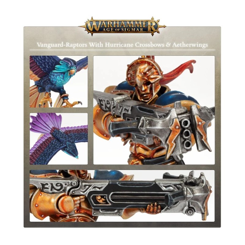 De plus, ce kit permet de monter 3 Aetherwings, et les Vanguard-Raptors peuvent au choix être assemblés avec des arbalètes Longstrike.
