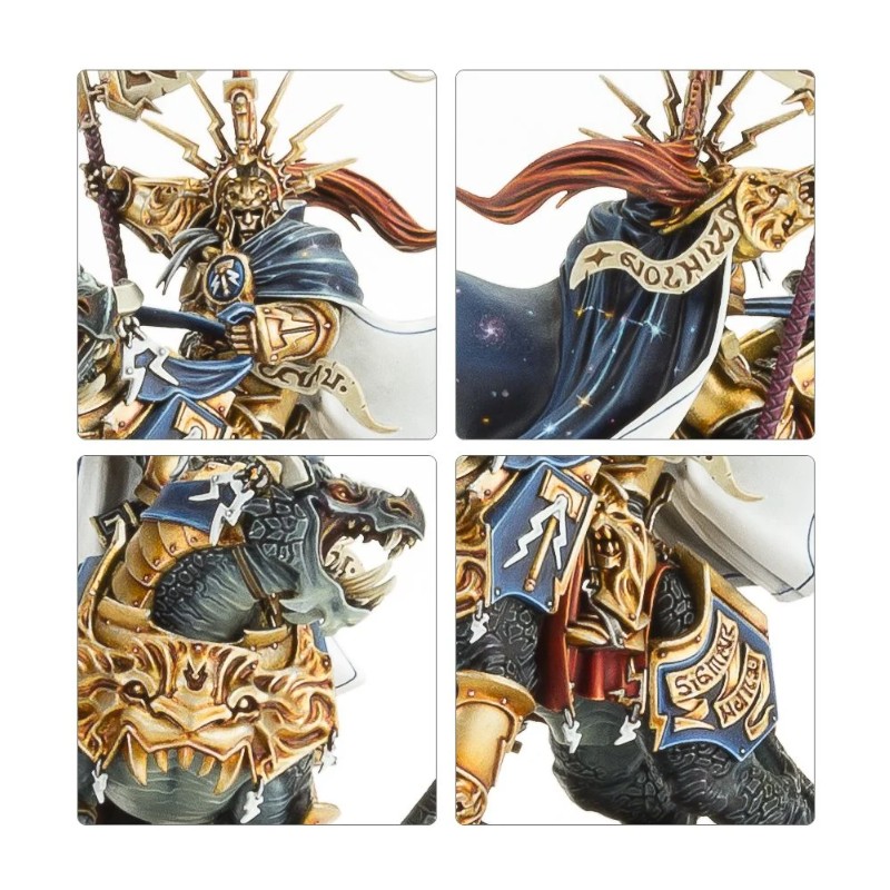 Ce kit plastique contient les composants nécessaires pour assembler Vandus Hammerhand, Lord-Celestant emblématique et chef à qui les Stormcast Eternals doivent maintes victoires, monté sur son puissant Dracoth.