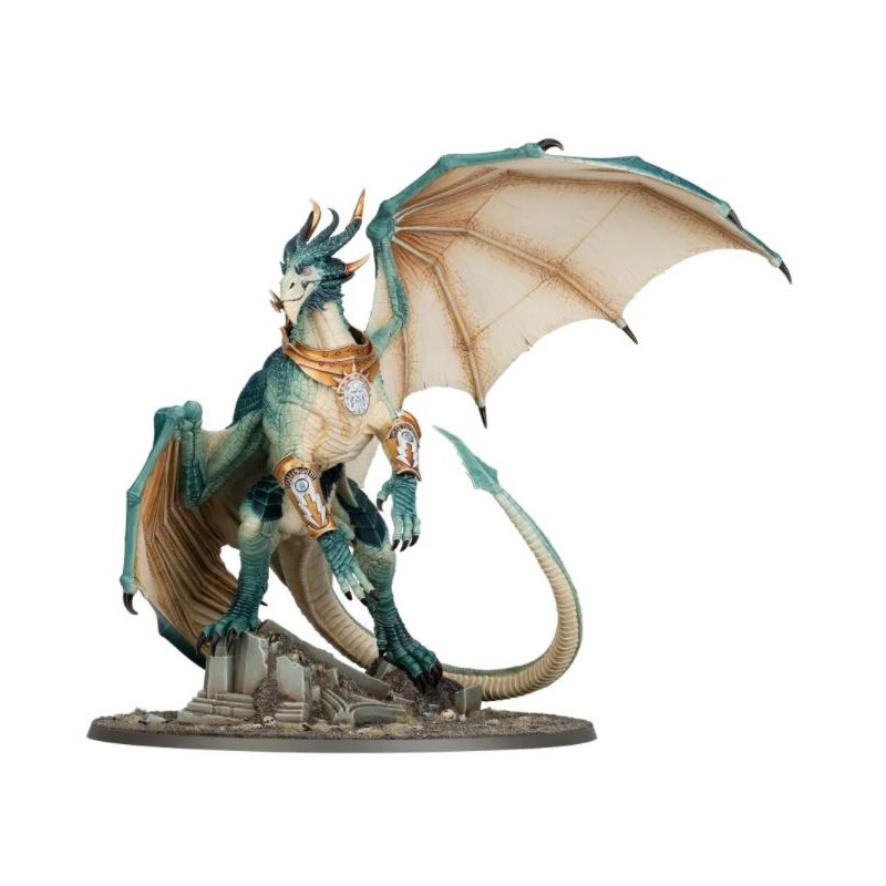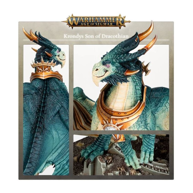 Description du produitIl y a très longtemps, avant que Sigmar fût saisi des cieux par le grand dragon Dracothion, le puissant empire draconithe fut renversé par Kragnos, dont les déprédations divines ravagèrent cité après cité jusqu'à ce qu'il ne reste plus qu'une poignée de Draconithes. Dans une tentative désespérée de vaincre ce qu'ils ne pouvaient tuer, les princes Krondys et Karazai demandèrent l'aide de l'énigmatique Seigneur Kroak pour sceller Kragnos sous une montagne, où il resta jusqu'à ce que le Nécro-séisme détruise sa prison. Kragnos était de retour, poussant les princes draconithes à signer le Pacte Draconis avec Sigmar et à emmener une nouvelle génération à la guerre contre les ennemis de l'Ordre.