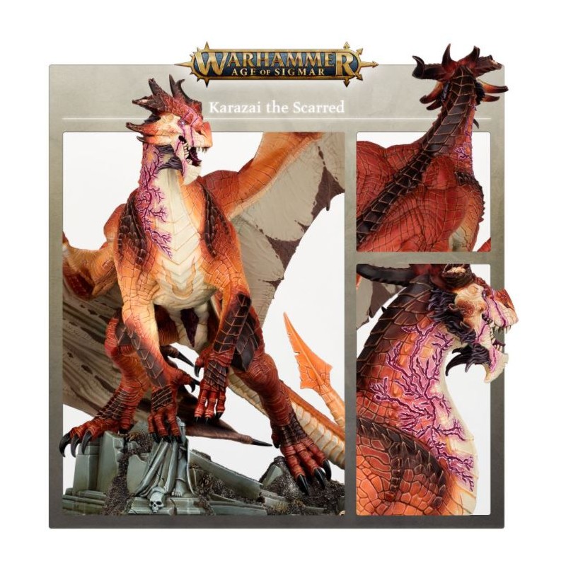 Un héros Draconith extrêmement puissant, habile dans la magie et le combat au corps à corps Les vrais dragons reviennent en tant que chefs colossaux pour les armées de Stormcast Eternals Peut être alternativement construit comme Karazai the Scarred, un combattant dominant au corps à corps