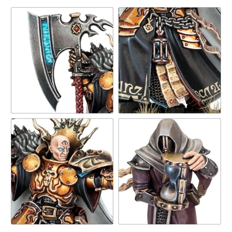 Description du produitLes Seigneurs-Terminos sont équipés d'une puissante lame pour décimer leurs ennemis, mais avec laquelle ils décollent également la tête d'autres Éternels. Ces sinistres personnages ont la charge d'offrir le repos aux membres affligés des chambres de la Perdition dont l'existence dans les Royaumes Mortels a atteint sa fin inévitable.