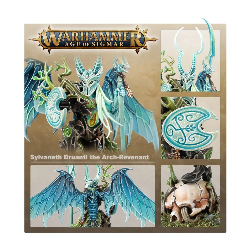 Description du produitLes Arch-Revenants planent loin au-dessus du champ de bataille, portés par les ailes d'un Zéphrite. Ils plongent pour frapper là où l'ennemi est le plus vulnérable, et leur présence régalienne inspire les Sylvaneths à proximité, en les emplissant de courage et d'agressivité.