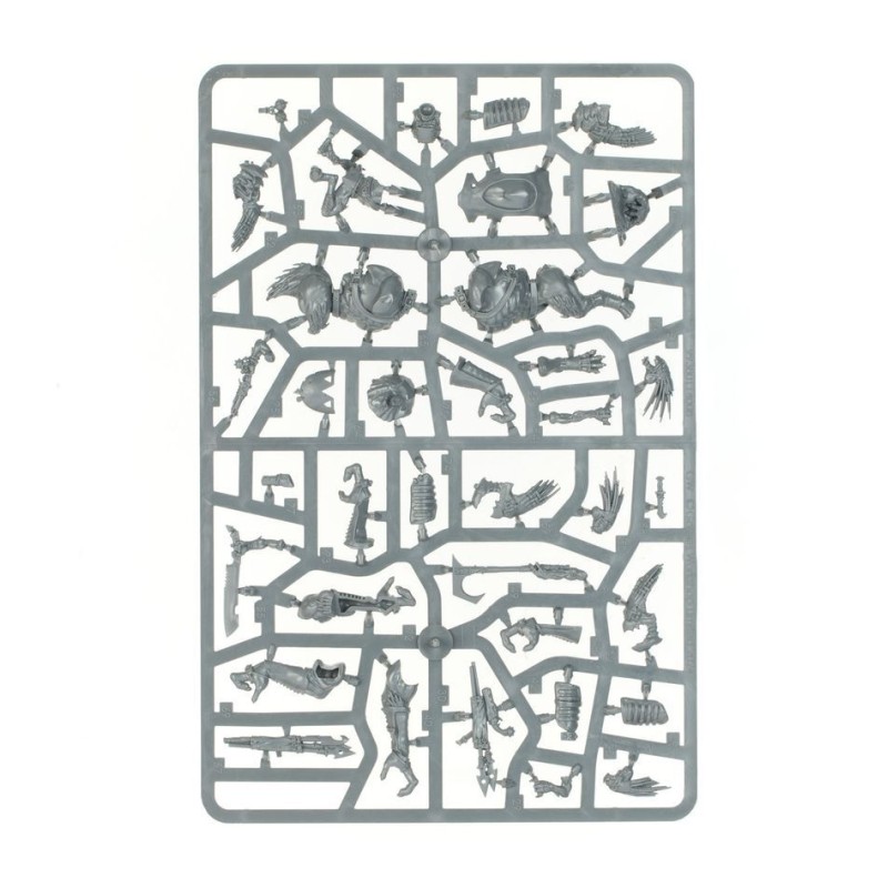 Vous trouverez également diverses options d'assemblage esthétiques pour vous aider à ajouter de la variété à vos meutes de Saccageurs, dont des têtes interchangeables et différents bras d'arme pour les guerriers kroots, ainsi que toutes sortes d'accessoires comme des grenades, des couteaux et des plaques d'armure à accrocher aux cavaliers comme à leurs montures.