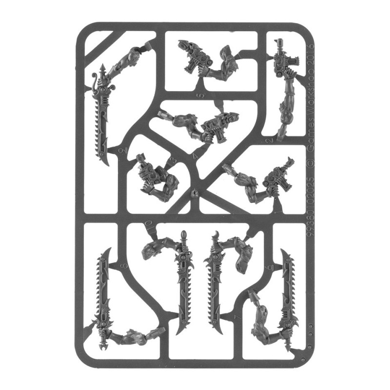 Description du produitVoici un ensemble d'améliorations d'armes en plastique destinées aux Tzaangors, Tzaangor Skyfires et Tzaangor Enlightened. Il comprend 5 bras avec pistolet-mitrailleur, et 5 bras avec épée tronçonneuse à employer à la place des bras d'origine des kits, et à fixer de même à la colle plastique.