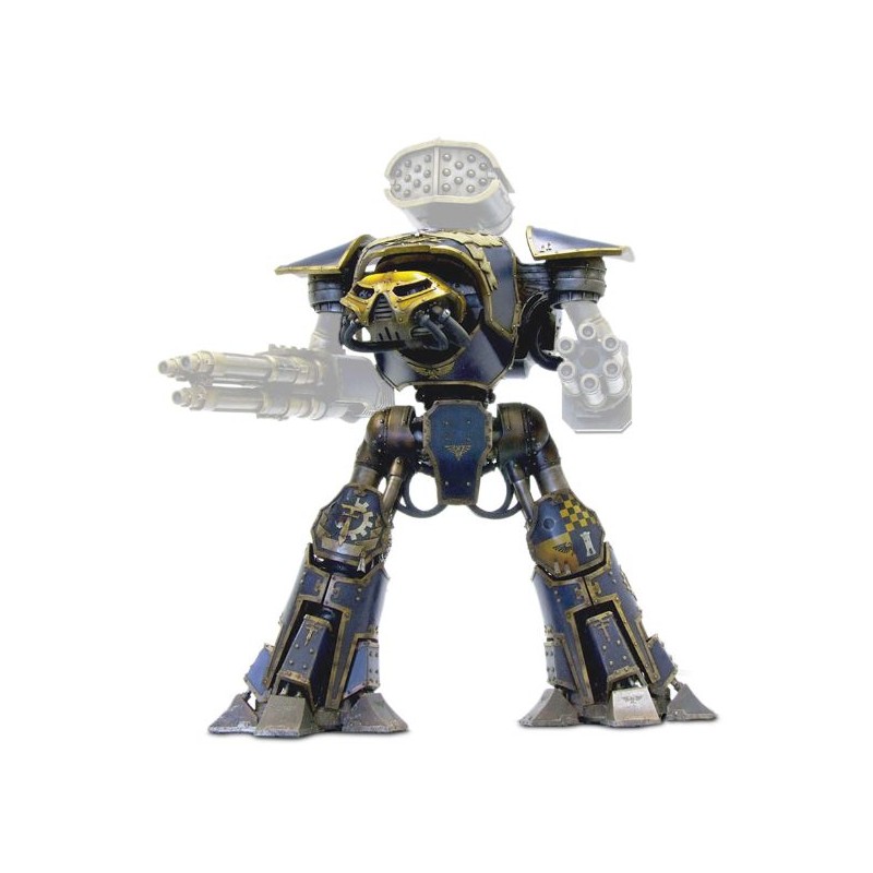 Ce modèle extrêmement détaillé du Mars Pattern Reaver Titan comprend un équipage composé d'un Princeps et de deux Moderati, d'un prêtre technicien et de trois serviteurs d'armes câblés.