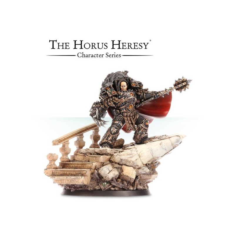 Horus le Maître de guerre est un modèle en résine multipartite étonnamment détaillé, armé du Talon du Maître de guerre et du puissant maillet Brise-monde. Il est équipé de l'unique armure Terminator connue sous le nom d'Écailles du serpent. Ce modèle repose sur un socle scénique représentant une balustrade impériale en ruine et un escalier en pierre. Il est également fourni avec un socle amovible plus petit pour les jeux. Horus, l'un des modèles de notre série de personnages, est livré dans une belle boîte de présentation.